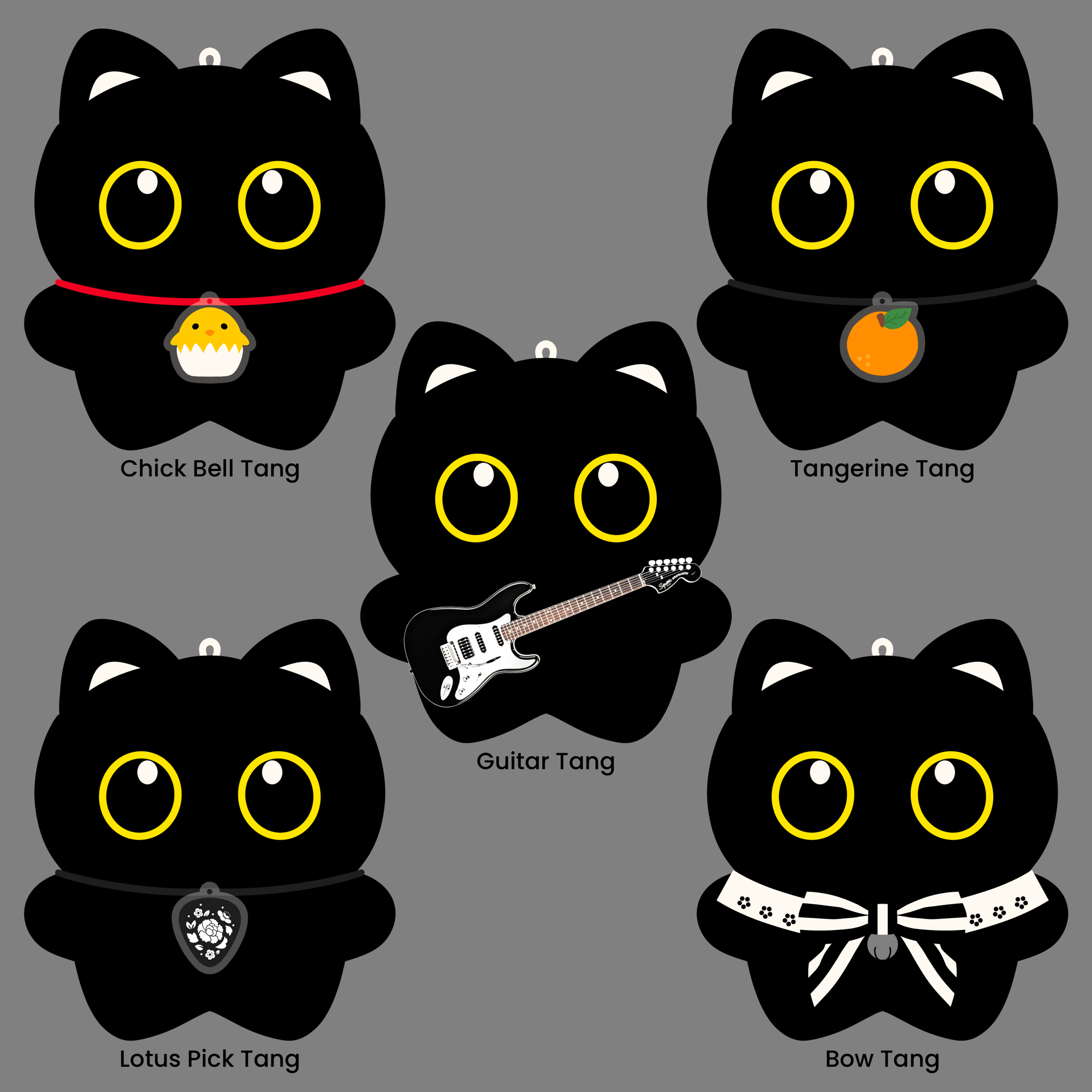 Plushie keychain, existing design. Comes with 2 black cat stickers and an adoption certificate print. Cute accessories are available to customize your own Tang! Get them already on your plush or separately.