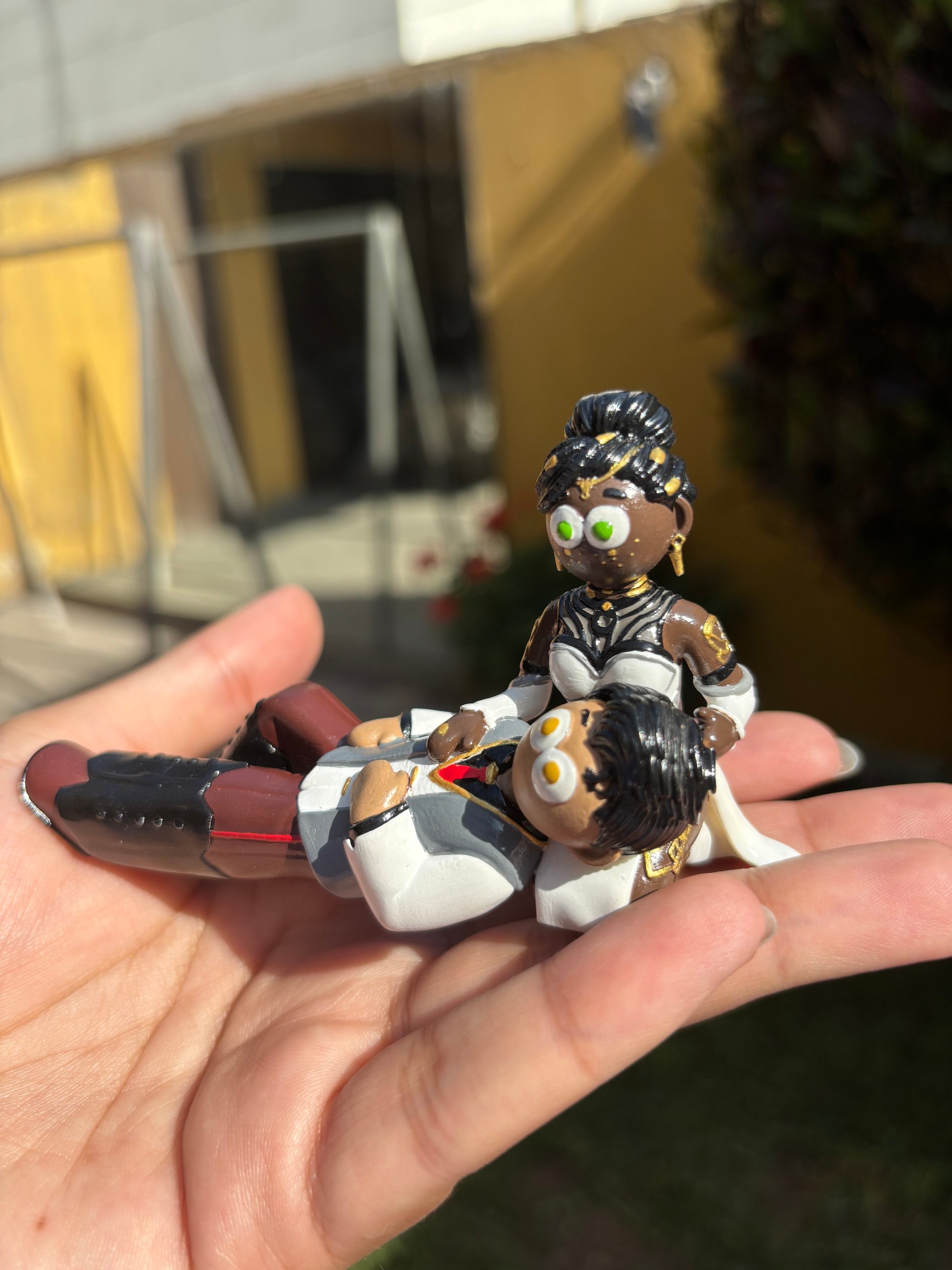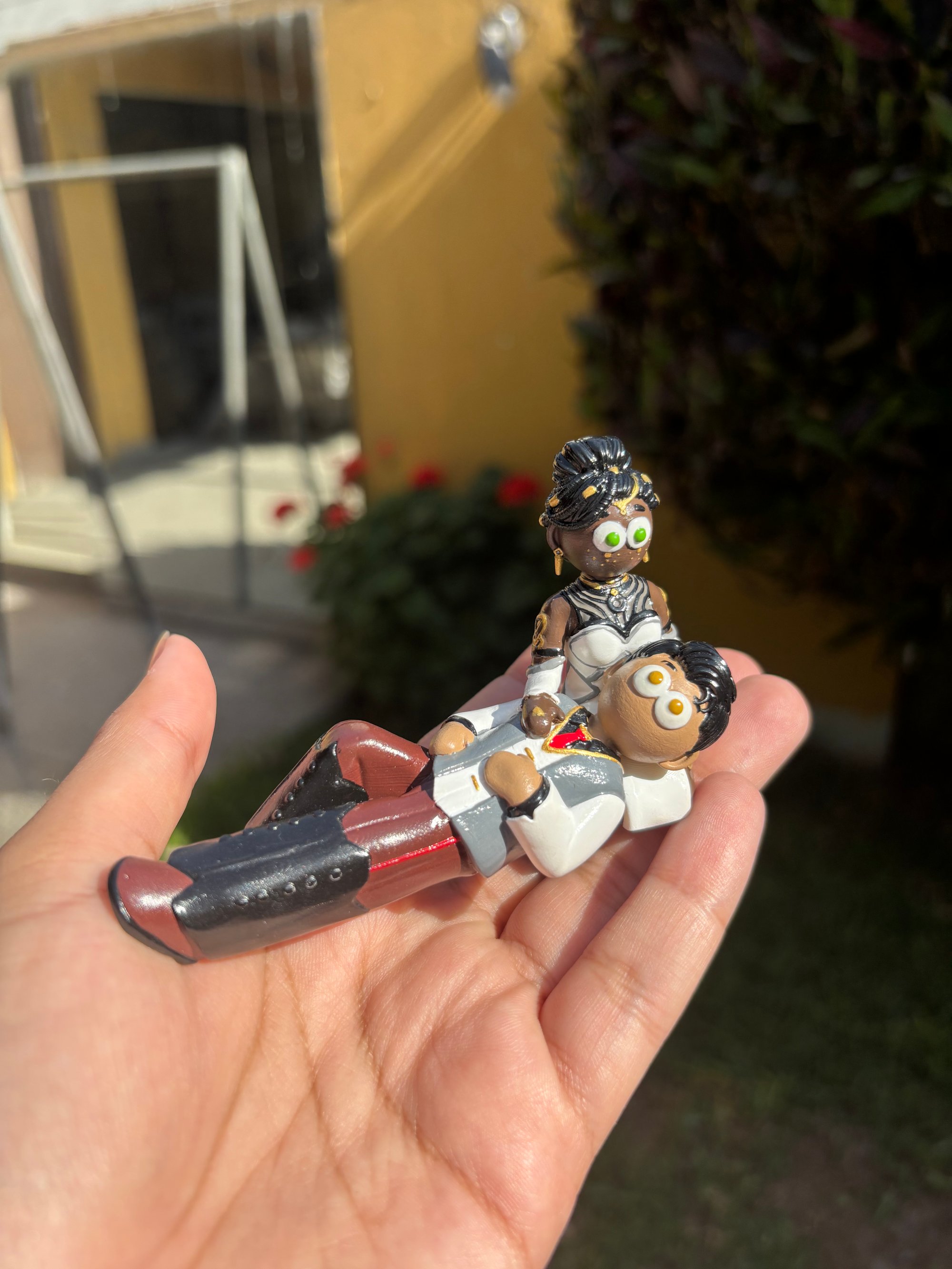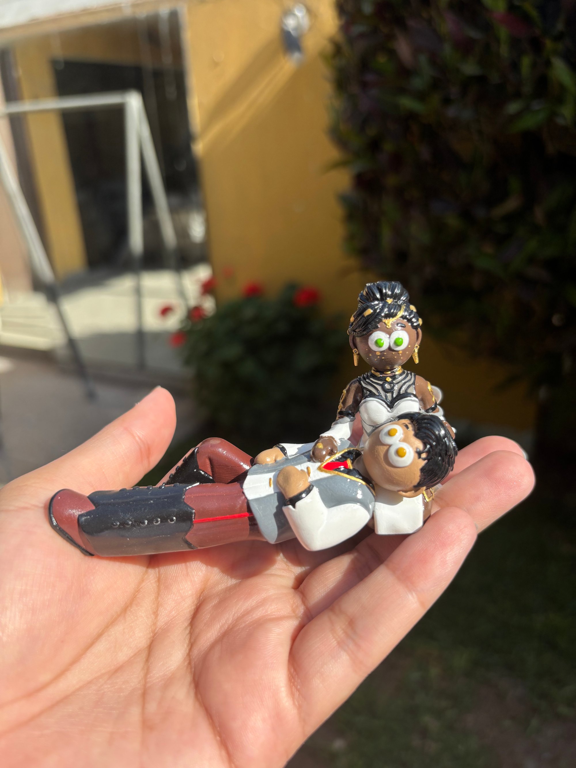 3D UV sensitive resine, hand painted. Collectible art piece. Each figurine comes with a polaroid print of the official show scene, and a care guide.