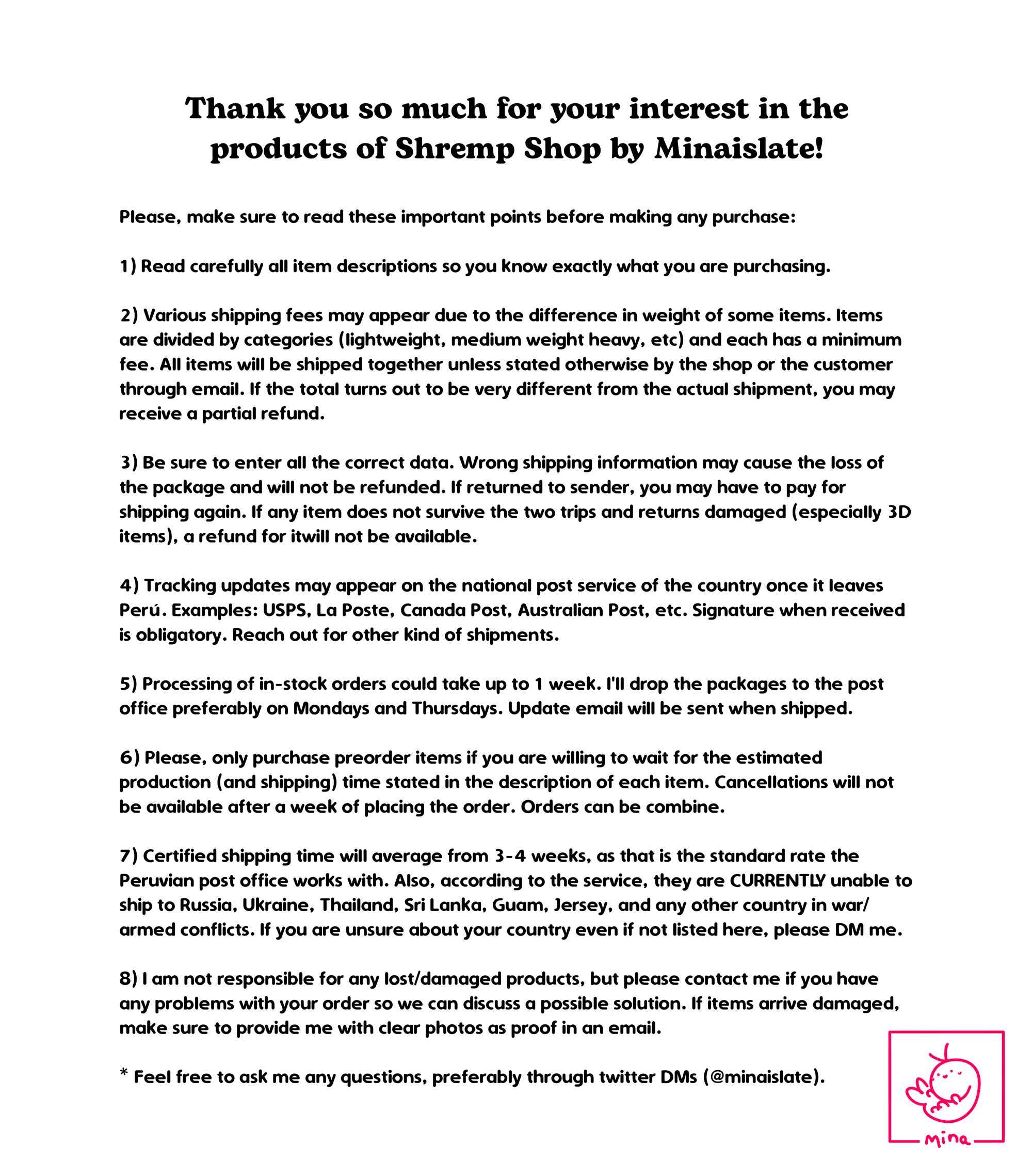 SHIPPING TO THE US IS NOT AVAILABLE THROUGH THIS SHOP, ONLY POSSIBLE THROUGH A GROUP ORDER. CHECK PIN TWEET ON MY X ACCOUNT TO JOIN.
